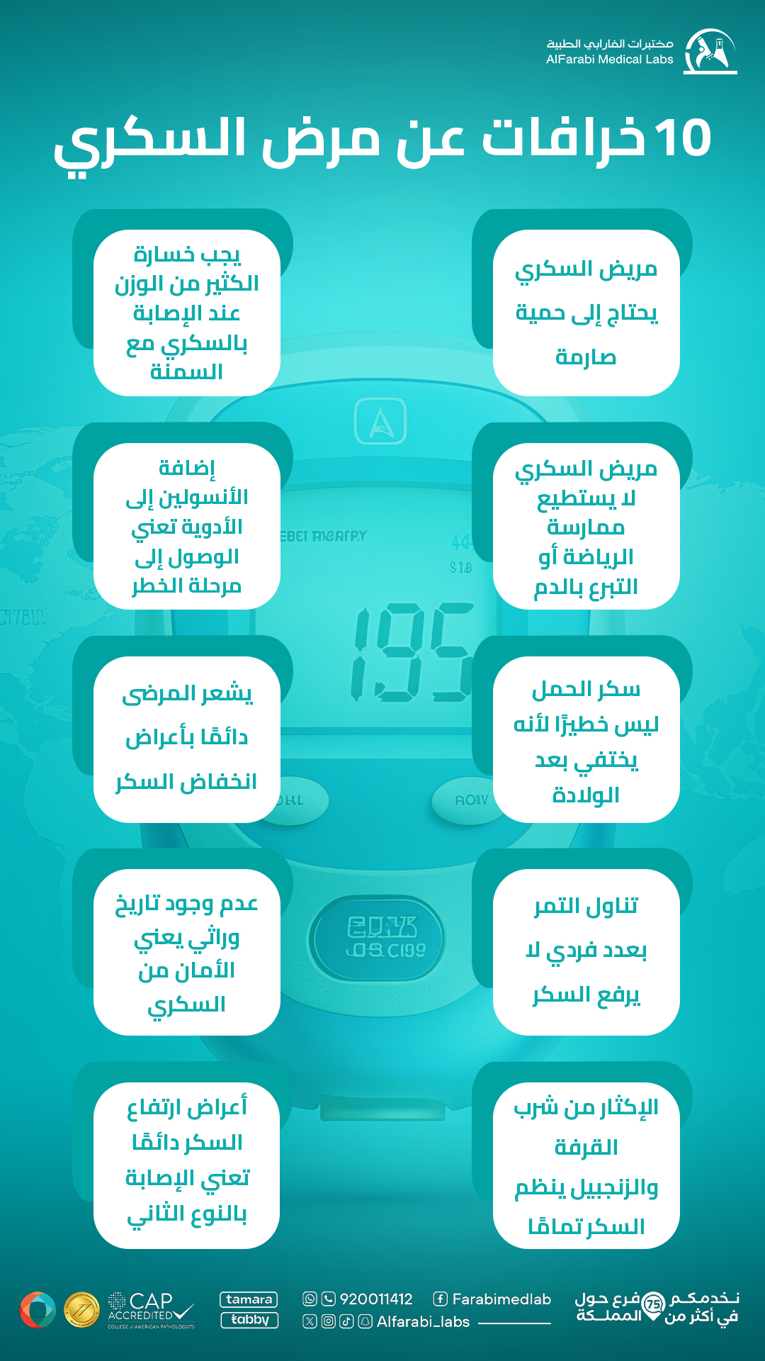 لا تعتمد على المعلومات المتداولة أو الخرافات المنتشرة، بل استشر طبيبك دائمًا وأجرِ الفحوصات الدورية في المختبر. التشخيص المبكر والمتابعة المنتظمة هما خط الدفاع الأول ضد مضاعفات السكري.