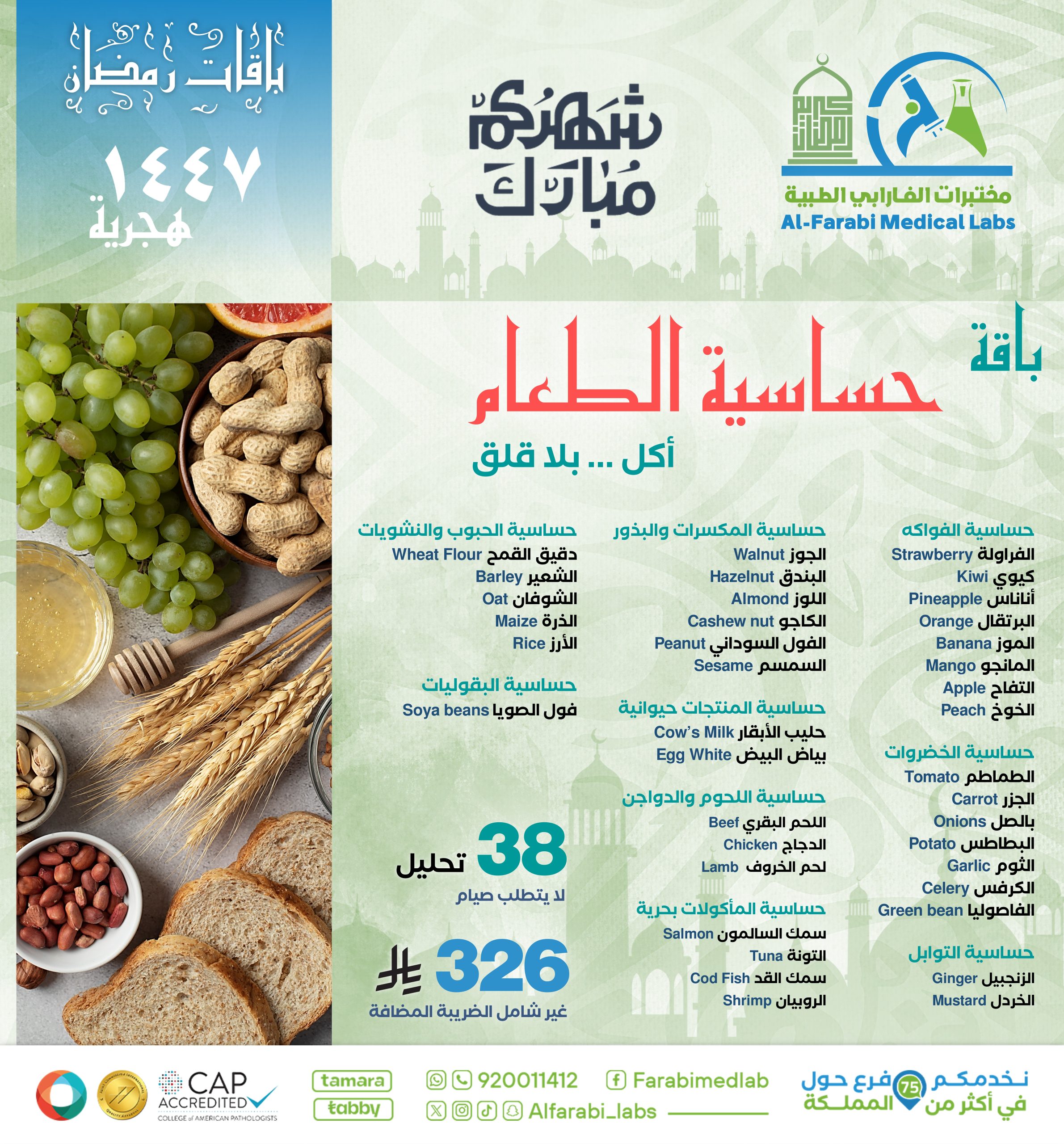 باقة شاملة لمراقبة حساسية الجسم تجاه أنواع متعددة من الطعام، تساعد على تناول الطعام بثقة دون قلق من ردود فعل تحسسية، مناسبة للكبار والأطفال الذين يعانون من حساسية تجاه المكسرات، الفواكه، الخضروات، اللحوم، الألبان، الحبوب، التوابل والمأكولات البحرية.