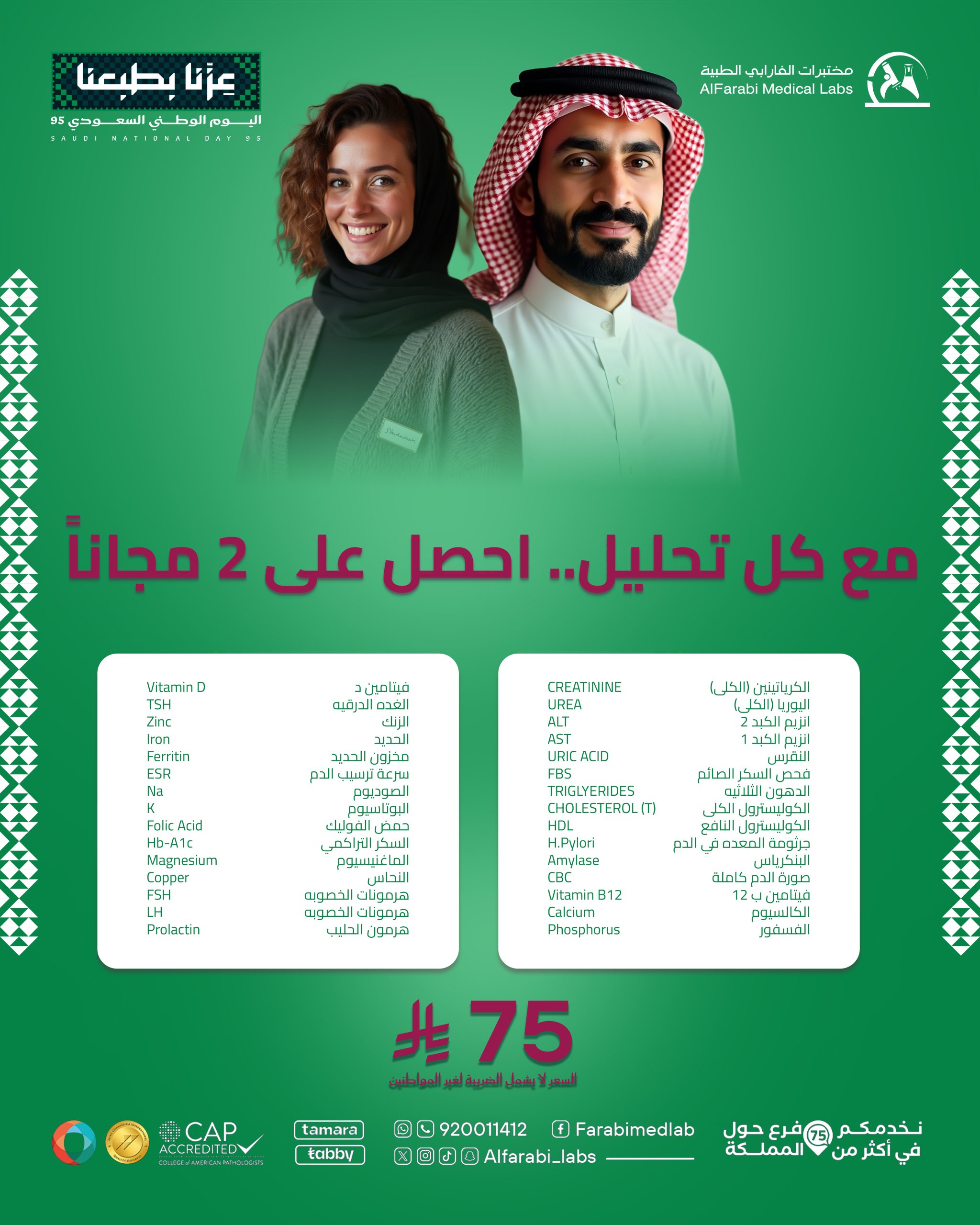 مع مختبرات الفارابي الطبية عروض اليوم الوطنى غير: