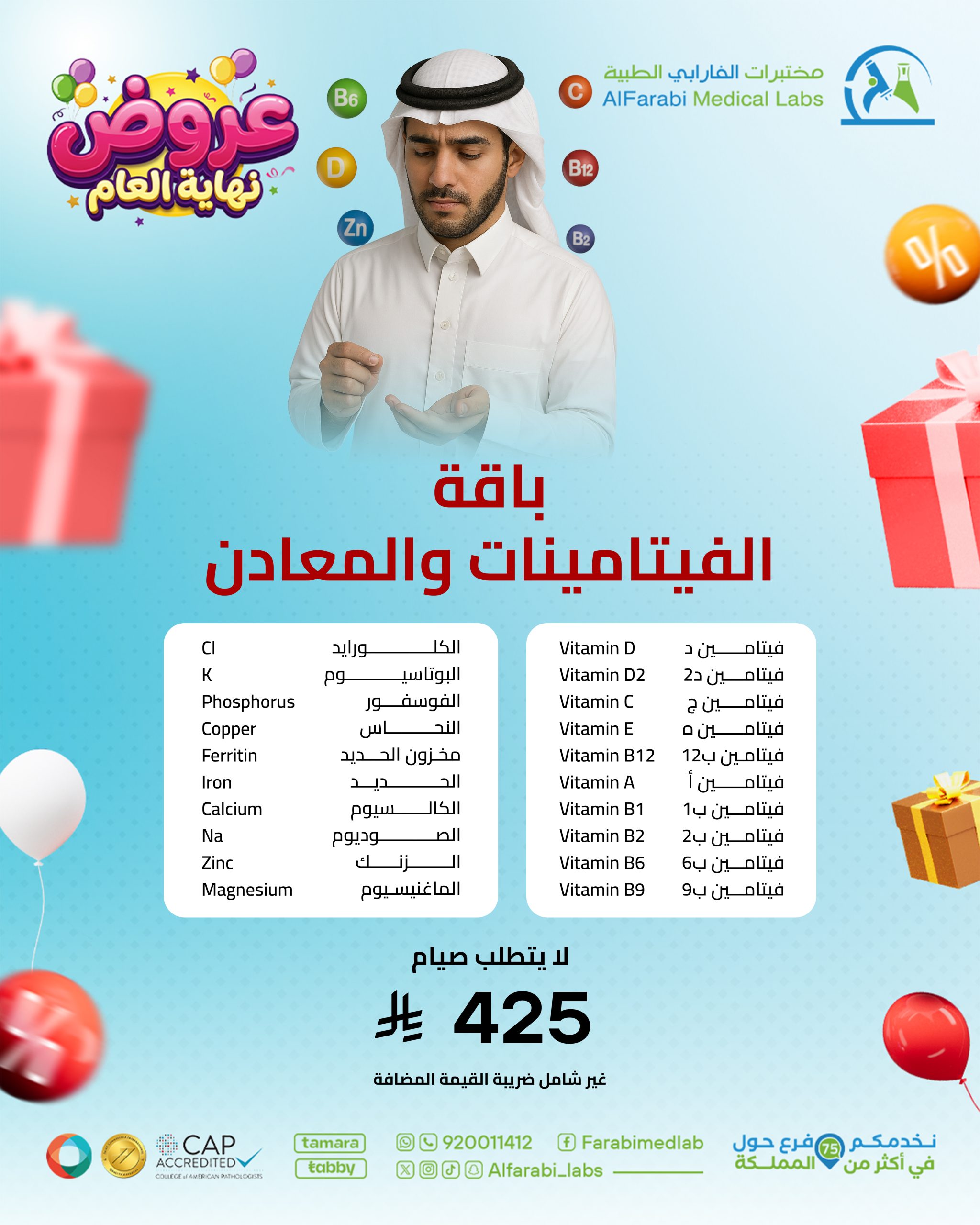 - فحص شامل يغطي كل الفيتامينات والمعادن الأساسية للجسم